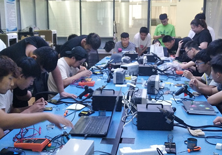 本竞赛采取网上发题方式,参赛员工需要在4天3夜的时间内完成查阅资料、设计方案并仿真、购买元器件、焊接电路、软件调试、撰写设计报告等过程,并最后提交设计的作品及设计报告。本次竞赛为公司首次参加,由于前期无技术基础、无经验参考,参赛员工及指导教师利用暑假期间,通过合理规划、紧张有序的培训与学习,培训期间,师生共同学习、提高,废寝忘食,逐步提升理论知识及专业技能。在员工培训及竞赛期间,机电与太阳集团tyc539武凤翔主任、王利卿副主任给予大力支持,提供良好的实验室条件,并配以优秀的指导教师,为取得优异的成绩打下坚实的基础。