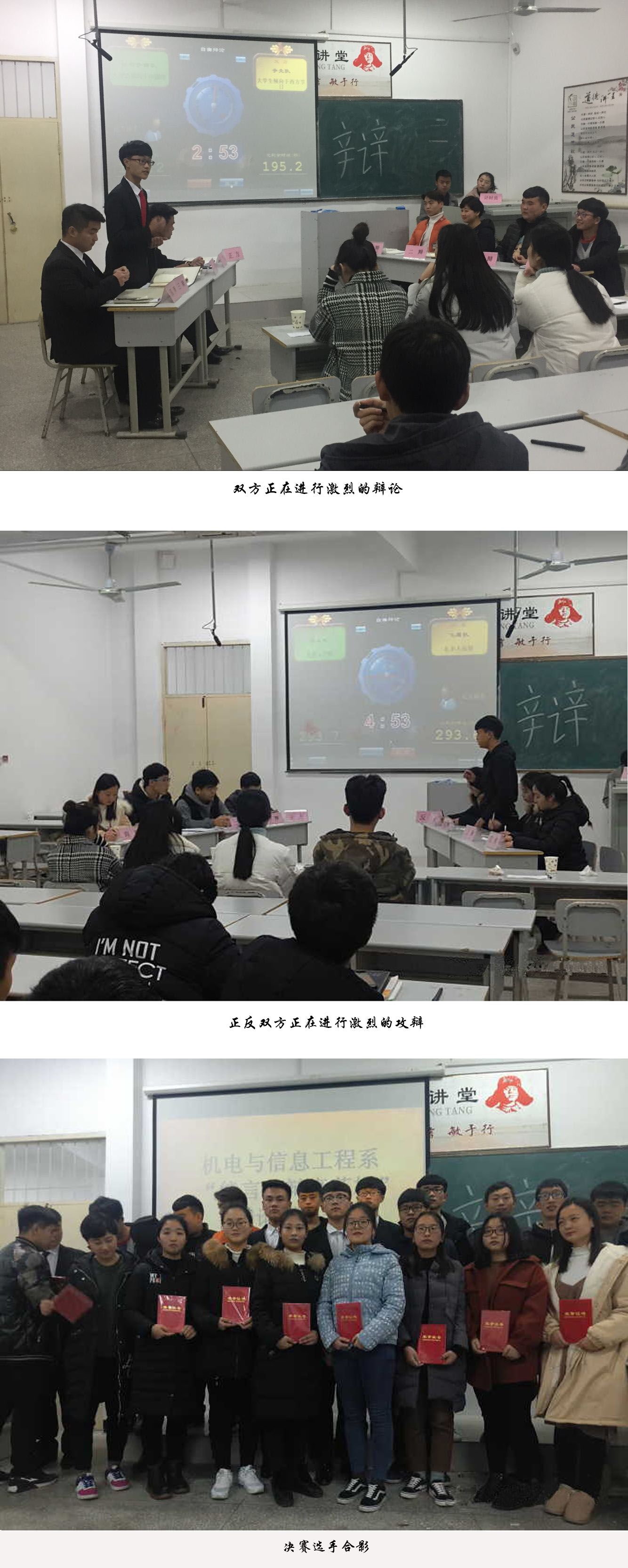 2017年12月20日机电与太阳集团tyc539在综合楼408举办了“能言善辩真英雄”辩论赛决赛。系副主任岳学超、学管老师及辩论赛全部选手参加。