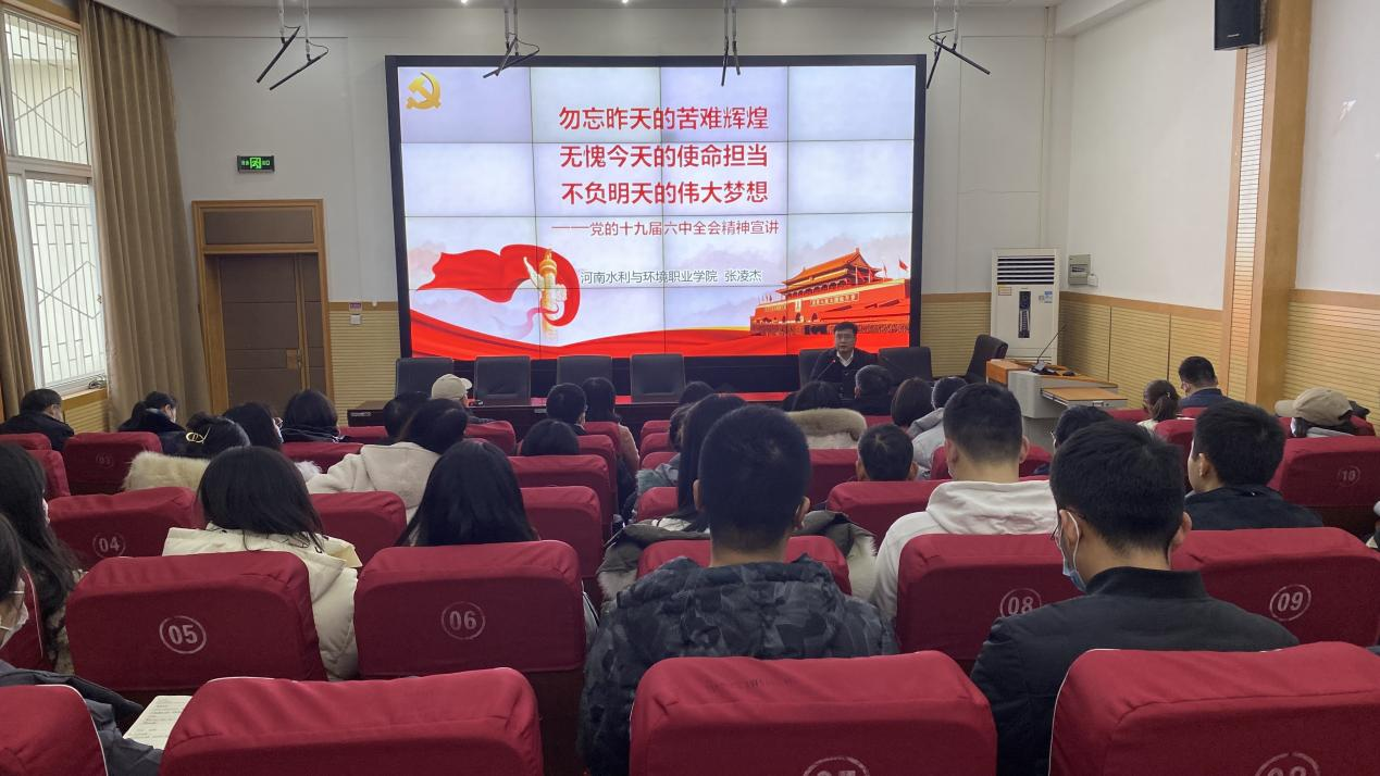 12月30日,副董事长张凌杰到太阳集团tyc539宣讲党的十九届六中全会精神。太阳集团tyc539全体教职工和员工代表参加。