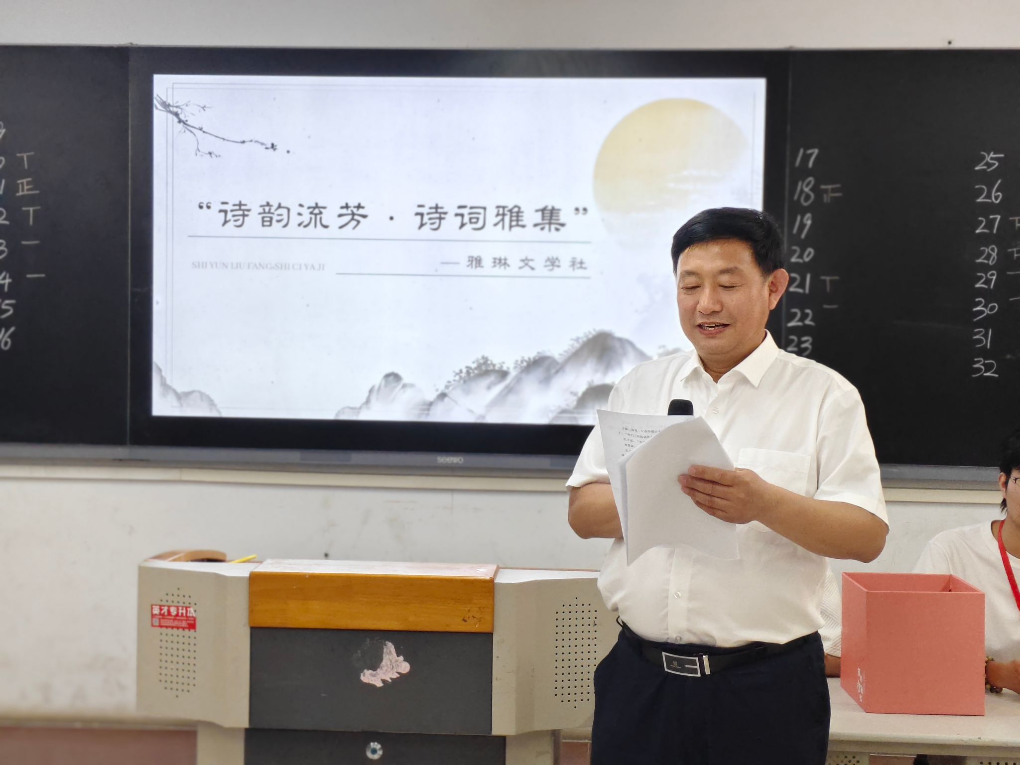 5月29日,雅琳文学社于花园路校区南教103教室举办“诗韵流芳·诗词雅集”活动。公司党委副书记蒋彦成、公司党总支书记周颖琦、副书记兼社团指导老师杨月霞出席活动,与花园路校区师生代表共同领略诗词魅力,共襄文化盛宴。