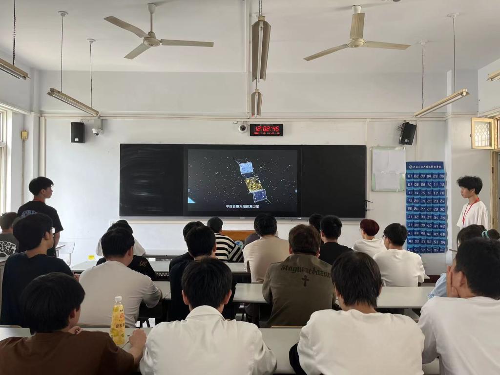 此次系列活动以“格物致知,叩问苍穹”为主题,通过知识问答、观看视频等多种形式开展。在线上航空知识问答活动中,同学们积极报名,踊跃参与,通过微信小程序在线答题。在线下集体观看学习航天视频活动中,系团学干部集中观看了国家航天局中国航天日宣传片《航天点亮梦想》,并发表学习感言,畅谈学习体会。