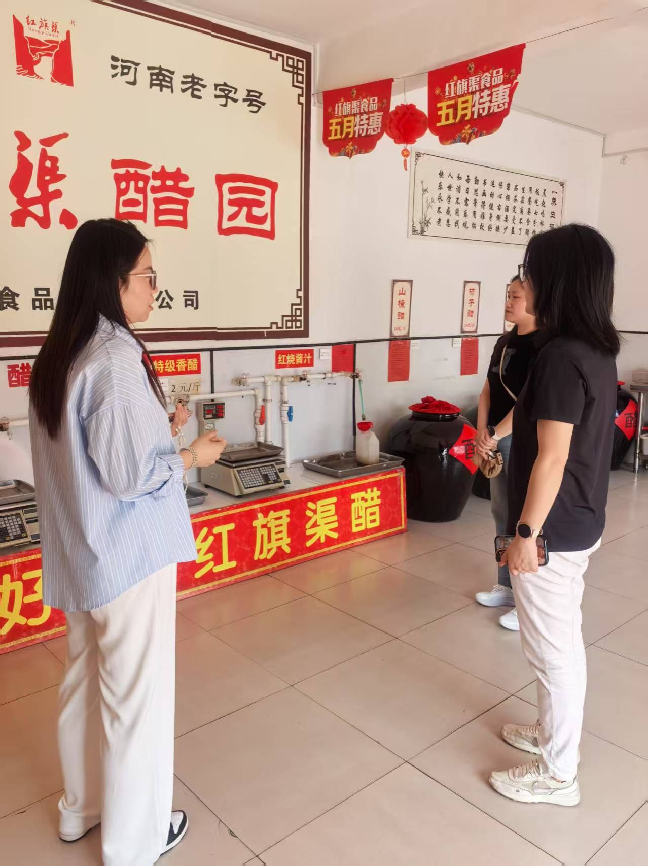 在林州百年手工酿醋工坊,非遗传承人指导师生近距离观摩传统酿醋“蒸、酵、熏、淋、陈”五道古法工艺。参与翻醅工序体验后,员工党员深有感触:“每滴醋历经365天自然酝酿,正如做人做事需坚守与沉淀。”师生还围绕非遗技艺的数字化保护路径、品牌创新策略等议题,与企业负责人展开深入研讨交流,积极为传统工艺创新发展建言献策,探索将数字技术融入非遗传承的可行方案。