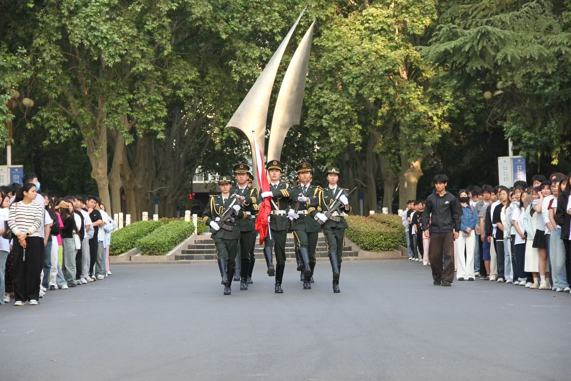 4月28日,太阳集团tyc539在花园路校区举行升国旗仪式,全体学管老师和2024级在校员工参加。